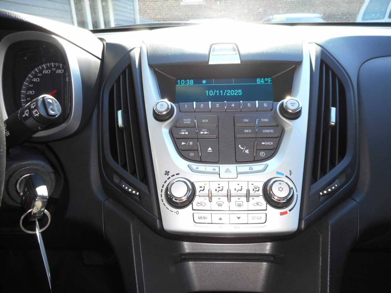 The exterior of this Equinox exudes elegance with its Charcoal roof-mounted luggage rack, body-color bumpers, and chrome-accented Charcoal grille. The halogen composite headlamps illuminate the way, while the deep-tinted glass adds a touch of mystery to your ride. The roof-mounted antenna ensures you stay connected with Bluetooth for phone connectivity to the vehicle's audio system.