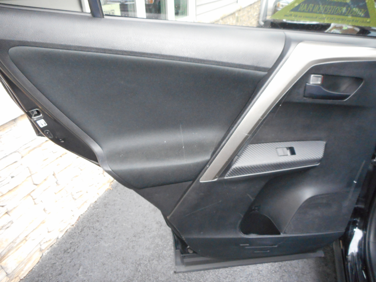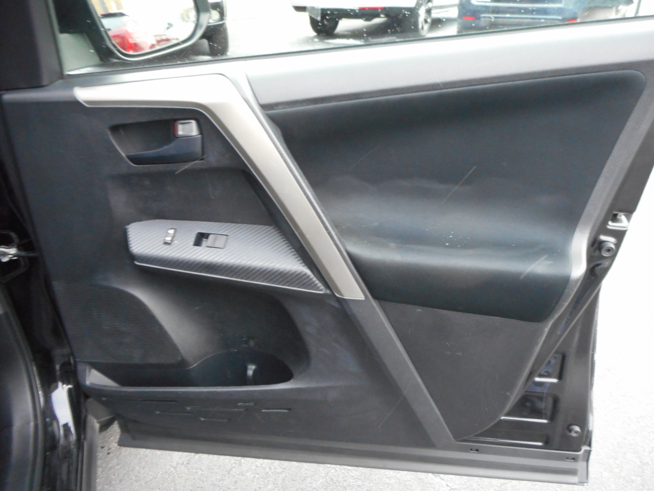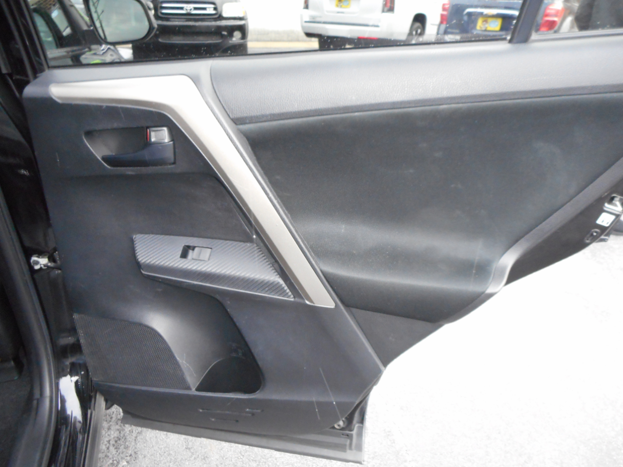 The exterior of this RAV4 is both stylish and functional, with its sleek black paint and chrome accents making a bold statement on the road. The 17" wheels and rear spoiler add a touch of sportiness, while the deep tinted glass provides privacy and protection from the sun.